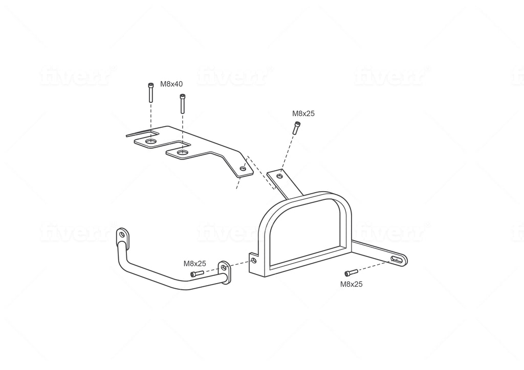 install the right side to the crossbar and the bottom of the footpeg bracket with 25mm bolts and nuts